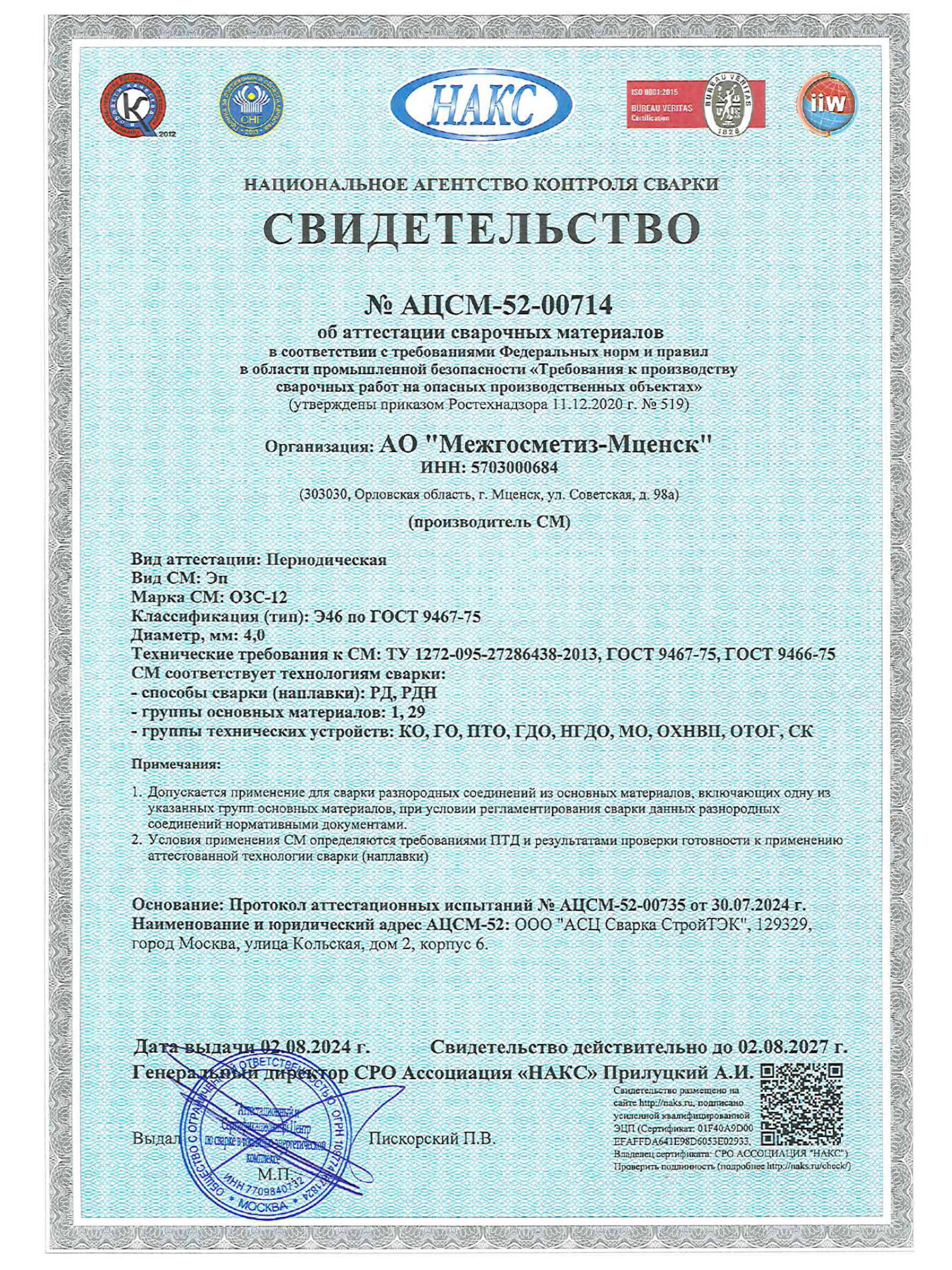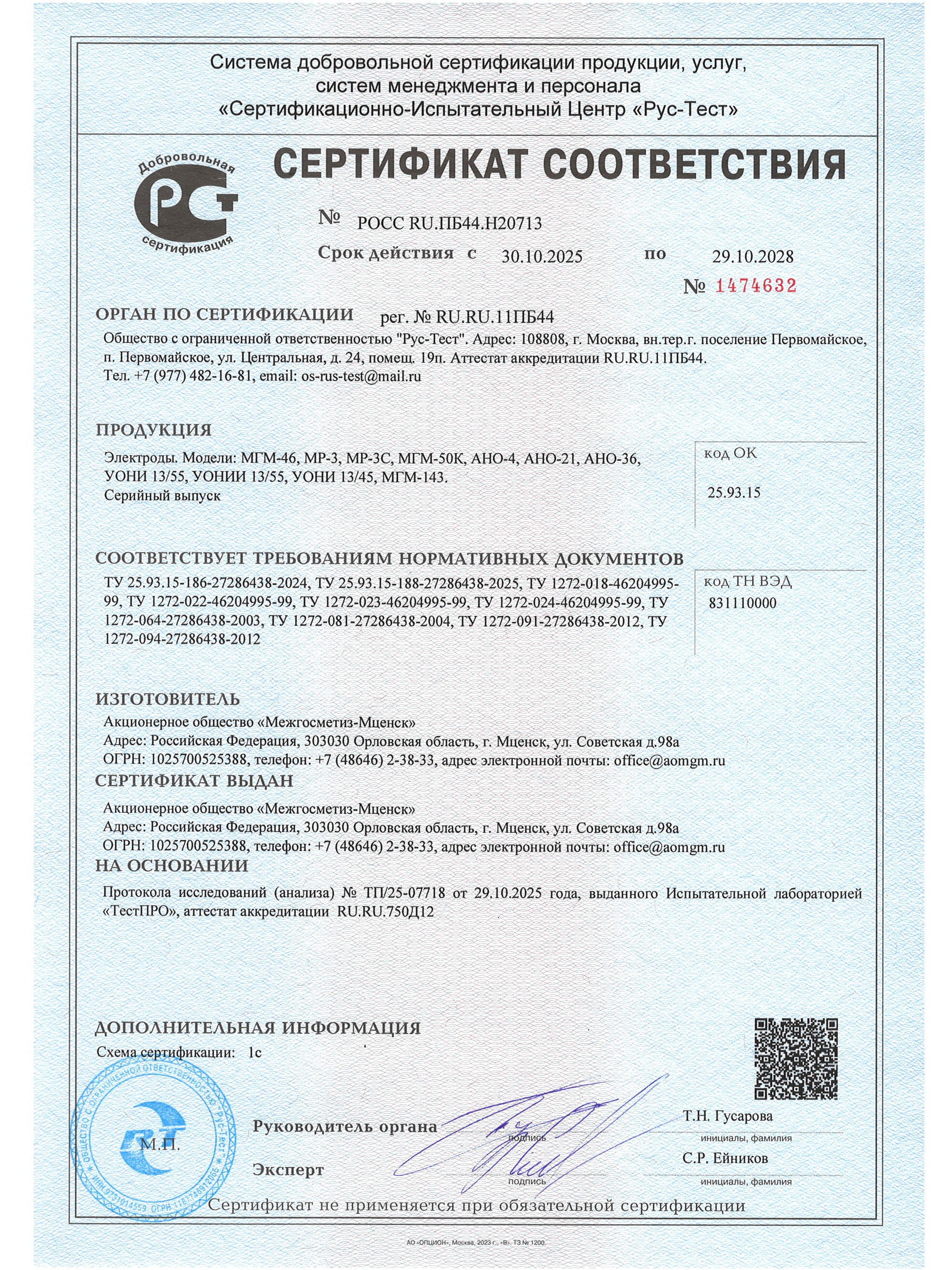 и сертификатами на продукцию