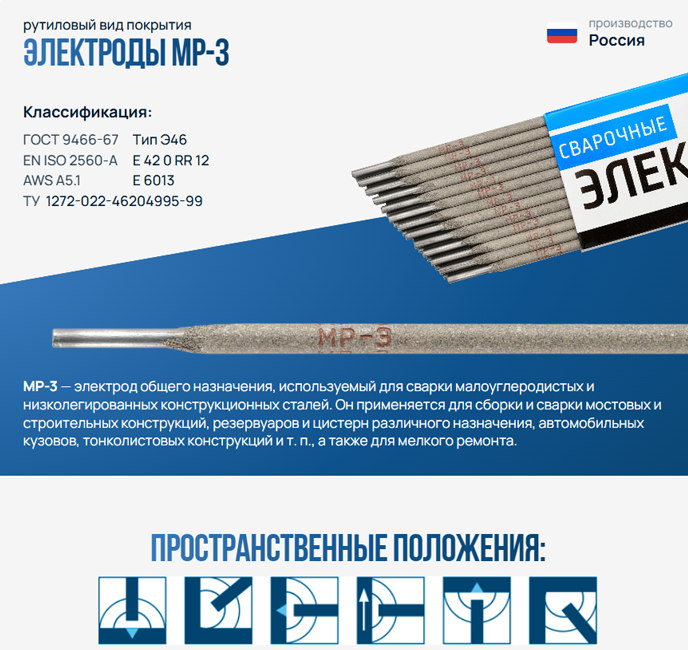 Электроды МР-3 формирует ровный и прочный шов, защищенный от попадания внутрь окисляющих элементов. Не образует стыков, шероховатостей и переходных зон. Характеризуется минимальным разбрызгиванием расплавленного материала.