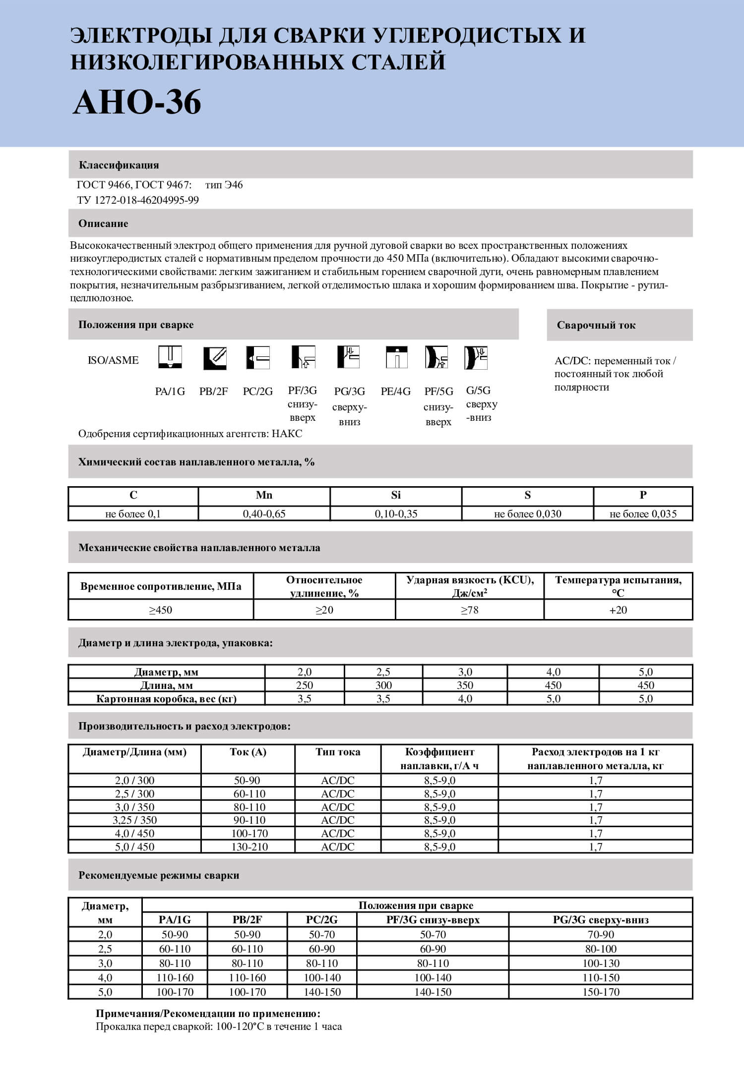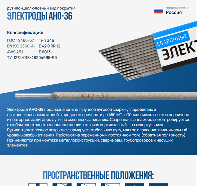 Высококачественный электрод общего применения для ручной дуговой сварки во всех пространственных положениях низкоуглеродистых сталей с нормативным пределом прочности до 450 МПа (включительно). Отличительные сварочно- технологические свойства даже при сварке металлоконструкций с плохой подготовкой кромок и сборкой.